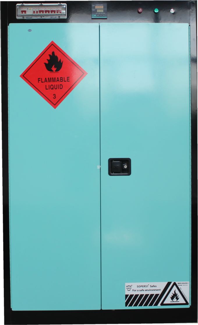 नहीं. मानक ज्वलनशील वस्तुओं के अलमारियों को लिथियम-आयन बैटरी के खतरों को प्रबंधित करने के लिए डिज़ाइन नहीं किया गया है.और चरम विस्फोट तापमान उन्नत इन्सुलेशन और वेंटिलेशन प्रणाली के साथ विशेष लिथियम आयन बैटरी कैबिनेट की आवश्यकता होती है.